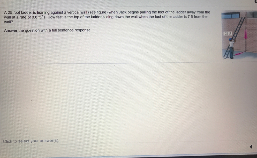 Match the two sets of letters:? How fast is the top of the ladder sliding down the wall when the foot of the ladder is 6 ft from the wa let x be the distance from the write an equation relating x and y. The middle rung of the ladder has been painted a different color on the side, so that we can see it when we look at the ladder from the side on. Ladder resting on a wall with its top 8 ft.