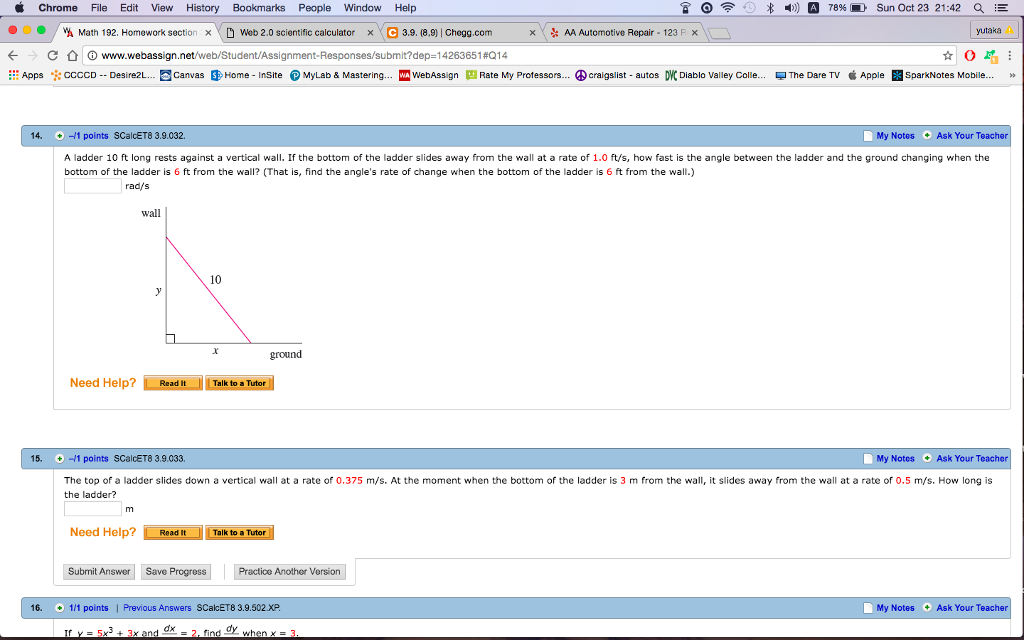 A Ladder 10 M Long Rests Against A Vertical Wall. #dy / dt = dy/dx dx/dt# (chain rule). The ladder will form the hypotenuse.