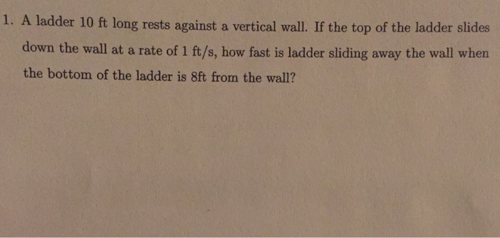 Calculus q&a library a ladder 10ft long rests against a vertical wall. A ladder 10ft long rests against a vertical wall. A rocket r is launched vertically and its tracked from a radar station s which is 4 miles away from the launch site at the same height above sea level.