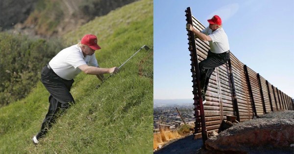Yet another user posted video footage of trump declaring, this wall can't be climbed, next to the same footage of young men scaling a fence
