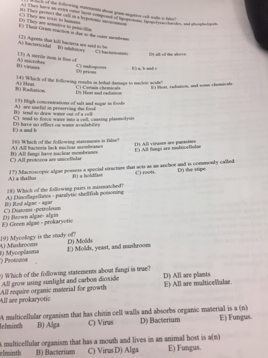 Which Of The Following Never Have Cell Walls. Fungi have cell walls and they are made of polysaccharide chitin, the subunit of which is glucosamine(c8h13o5n). They have cell membrane though.