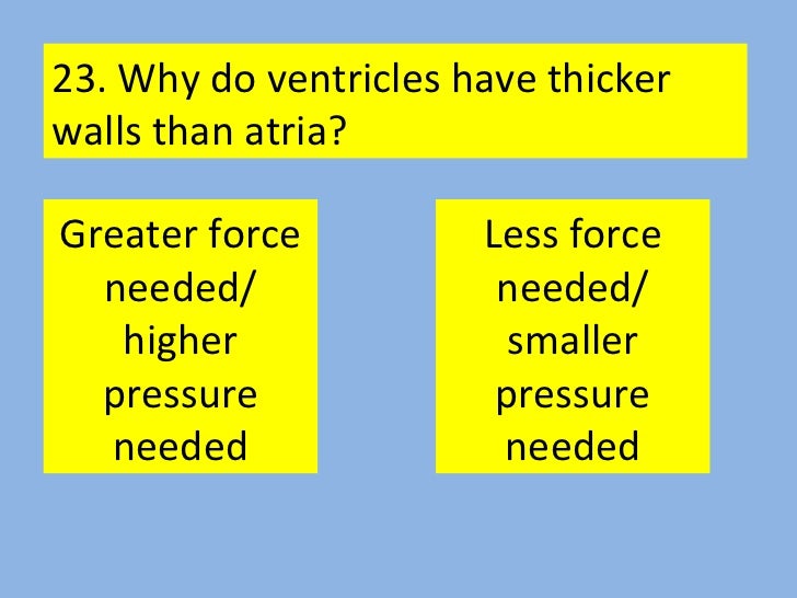 This elasticity helps to maintain the blood pressure throughout the in reptiles, the ventricular septum of the heart is incomplete and the pulmonary artery is equipped with a the thick septum of the heart is not perforated and does not have visible pores as some people. This is because blood is pumped out of the heart at greater pressure from these chambers compared to the atria. There is risk of left ventricular free wall rupture associated with acute myocardial infarction.